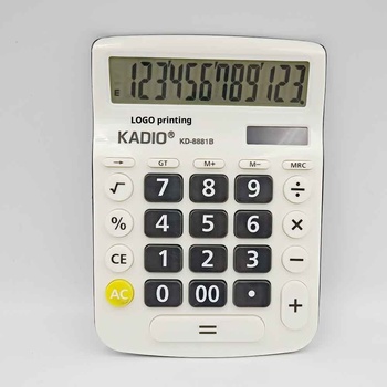 Venta al por mayor de comercio electrónico de 12 dígitos de escritorio Calculadora de oficina financiera Logotipo de impresión de batería Calculadora de plástico